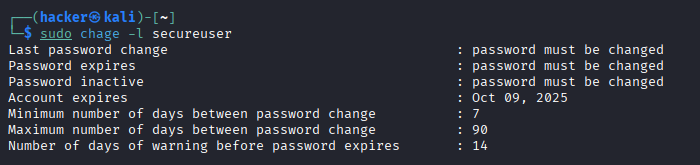 Password Security chage -l username Check password policy