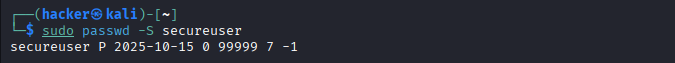 Password Security passwd -S username Check password status
