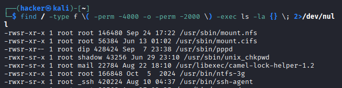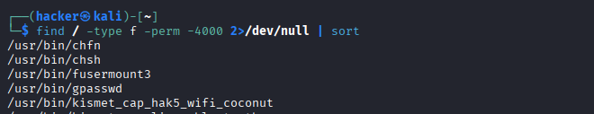 find / -perm -4000 Find SUID files find / -perm -4000 2>/dev/null