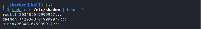 sudo cat /etc/shadow | head -3