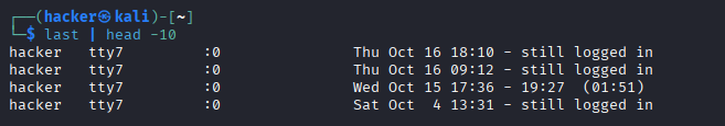 Monitoring last -n 10 Recent logins