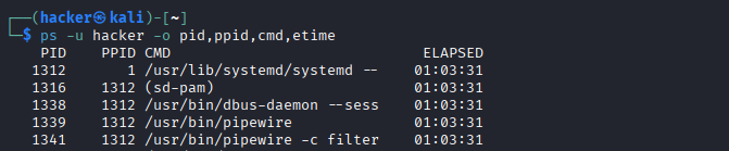 ps aux | grep user User processes ps aux | grep alice