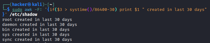 awk -F: '$3==0' /etc/passwd Users with UID 0 Check for root-equivalent accounts
